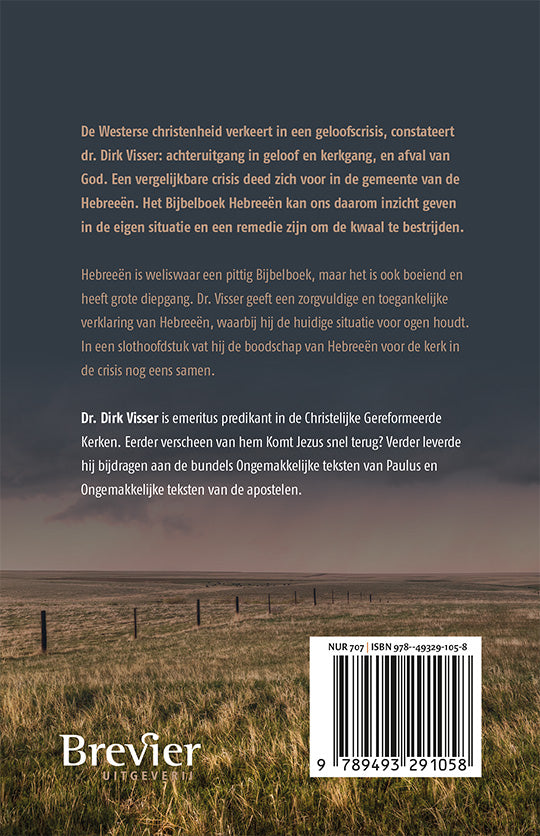 De Westerse christenheid verkeert in een geloofscrisis, constateert dr. Dirk Visser: achteruitgang in geloof en kerkgang, en afval van God. Een vergelijkbare crisis deed zich voor in de gemeente van de Hebreeën. Het Bijbelboek Hebreeën kan ons daarom inzicht geven in de eigen situatie en een remedie zijn om de kwaal te bestrijden. Hebreeën is weliswaar een pittig Bijbelboek, maar het is ook boeiend en heeft grote diepgang.