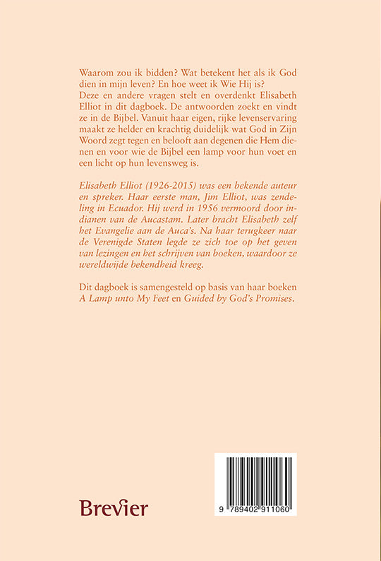 Elisabeth Elliot was een schrijfster en zendelinge die bekend stond om haar diepe geloof en vermogen om met lijden om te gaan. Haar leven werd gekenmerkt door zowel vreugde als verdriet, en ze ervoer persoonlijk hoe het is om grote verliezen te lijden. Na de tragische dood van haar man, die door de Auca-indianen in Ecuador werd vermoord, vond Elisabeth troost en richting in haar geloof. Ze ontdekte dat God haar door deze moeilijke tijden heen leidde en leerde haar vertrouwen op Zijn plan, ook al begreep ze het niet altijd volledig.