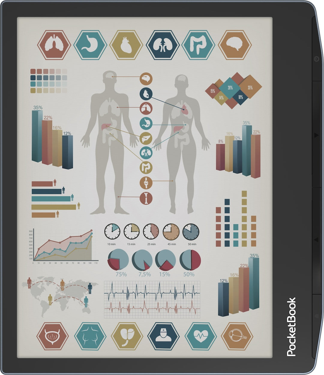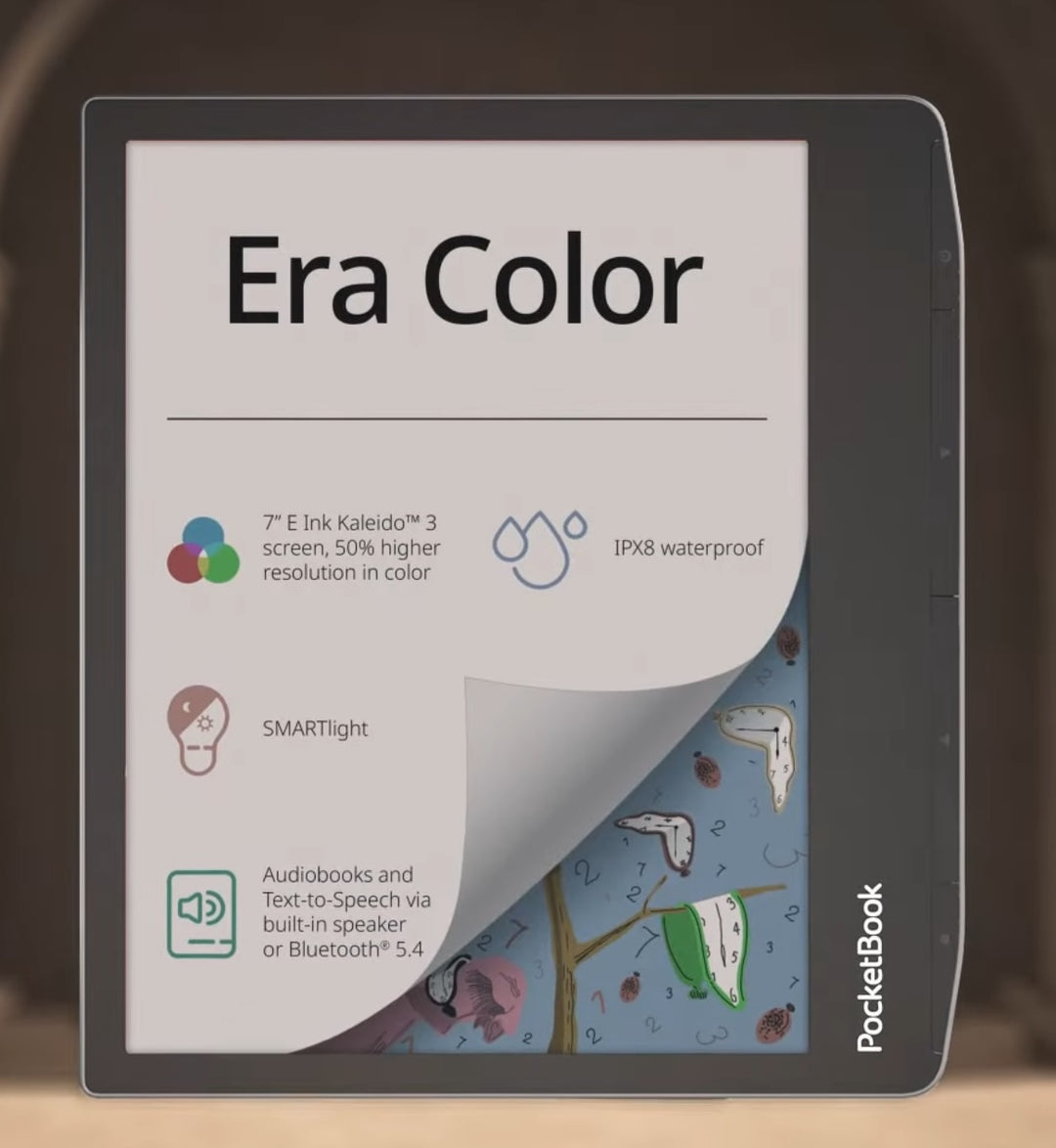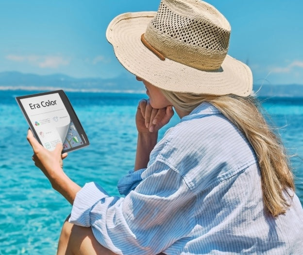 De 7-inch PocketBook Era Color heeft het nieuwste E-Ink Kaleido™ 3 kleurenscherm, met een 50% verbeterde resolutie en PPI voor kleur. Het biedt een zwart-wit beeldresolutie van 1264 x 1680 en een kleurenbeeldresolutie van 632 × 840. Met de mogelijkheid om 4096 kleuren weer te geven, biedt Era Color een beeldscherm dat rustig is voor de ogen en schittervrij in de zon.