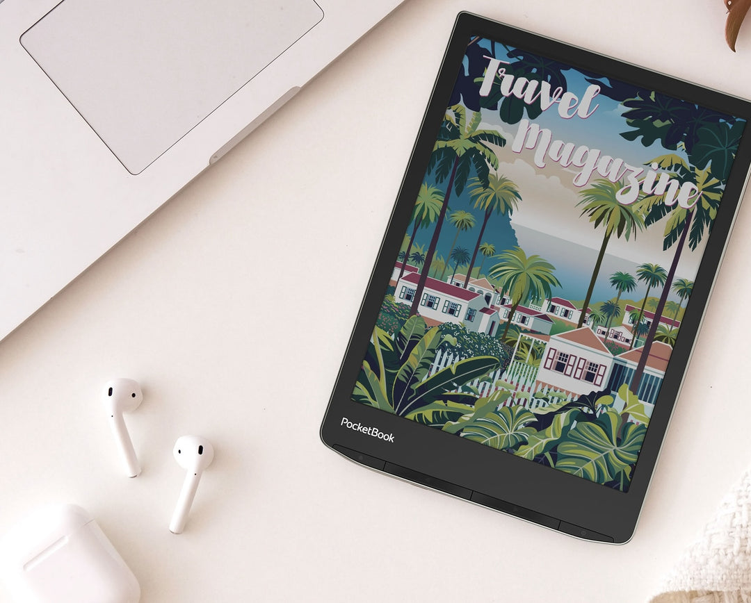Met de PocketBook InkPad Color 3 kun je genieten van audioboeken en muziek, evenals het gebruiken van de tekst-naar-spraak-functie. Het apparaat is uitgerust met een ingebouwde luidspreker hiervoor. Dankzij Bluetooth® is het ook mogelijk om draadloze hoofdtelefoons en vergelijkbare apparaten te gebruiken. Ook kunnen bedrade hoofdtelefoons worden aangesloten op het apparaat met behulp van een USB-C-audioadapter (niet inbegrepen).