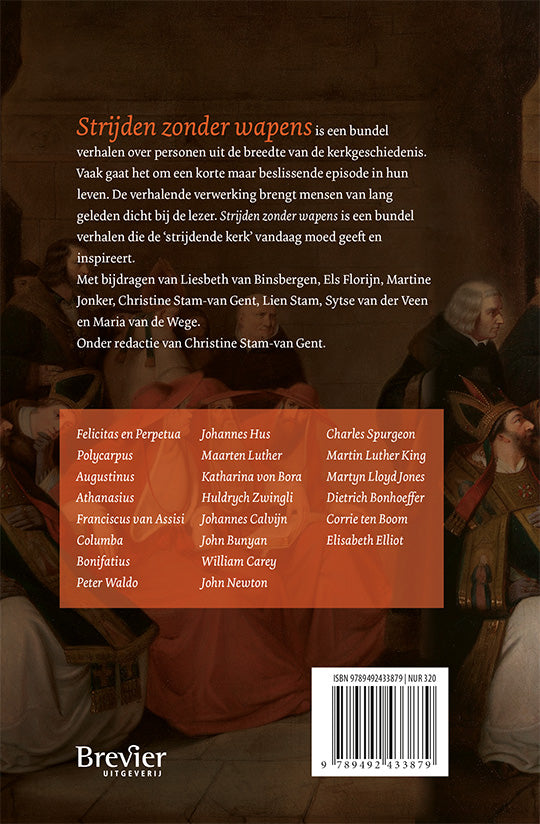 Strijden zonder wapens is een bundel verhalen over personen uit de breedte van de kerkgeschiedenis. Vaak gaat het om een korte maar beslissende episode in hun leven. De verhalende verwerking brengt mensen van lang geleden dicht bij de lezer.